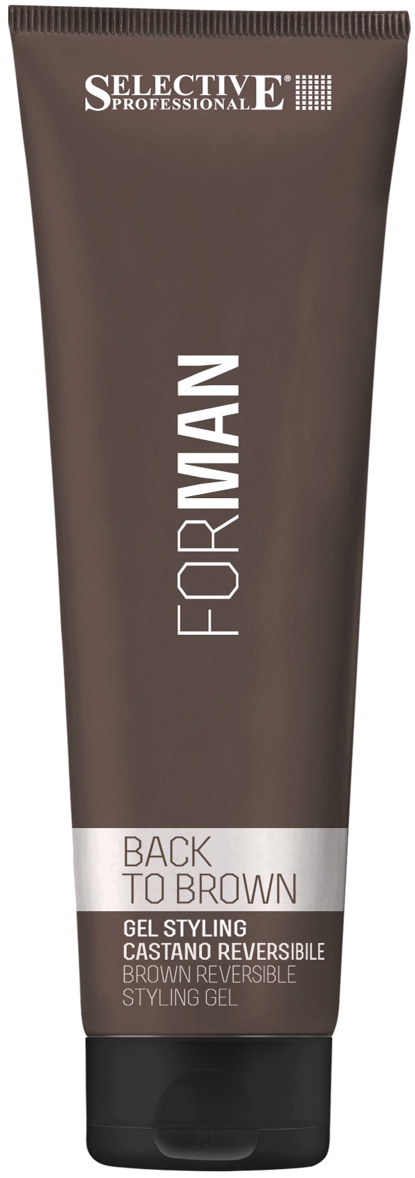 For Man Back to Brown Gel, a strong hold, long-lasting brown gel, to cover grey hair. Its fluid consistency makes it easy to apply and style. It does not stain the scalp, hands or clothing during or after the application. Washes out in water.